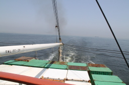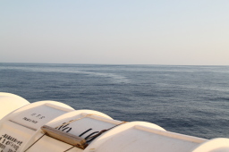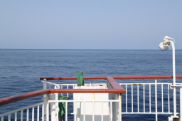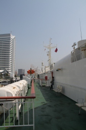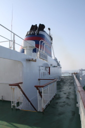 | 荷物を置いて、速攻でデッキへ。 まだ、数人しか上がってきてませんでした。 |