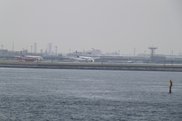 | 羽田空港が見えてきました。 いつもラッシュアワーです。 |