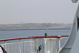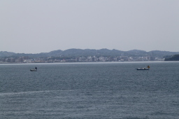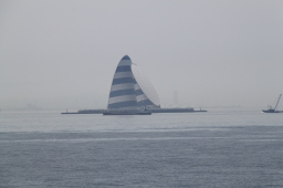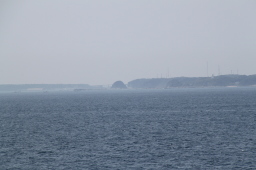 | とうとう城ケ島が見えてきました。 ということは、いよいよ外洋です。 汚い海ともお別れです♪ レインボーブリッジよりも、城ケ島の方がスタートを切ったような 気がします。 |
