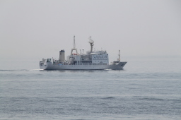 | 東京海洋大学って書かれています。 大学がこの規模の船をもってるって、一体何なんだ? 調べてみたら、2003年に設立された国立大学で、その前身は 共に120年以上の歴史を誇る、東京商船大学と東京水産大学が 合併してできた大学なのだそうな。 |
