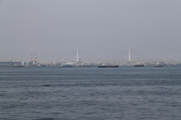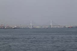 | すぐ隣にあるベイブリッジです。 横浜まで来ました。 もう、1時間以上走っています。 |