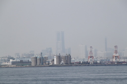 | 横浜ランドマークタワーがかすんでいます。 今日はガスっぽいです。 |