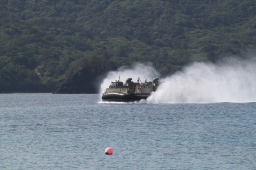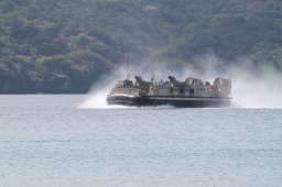 朝方自衛隊の船が入港していて、ホバークラフトで上陸中 わぉ\(◎o◎)/!