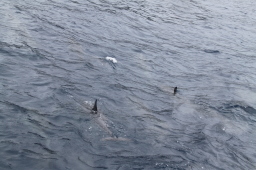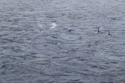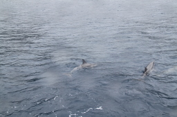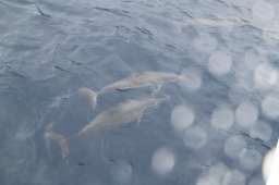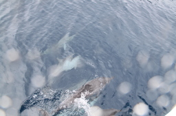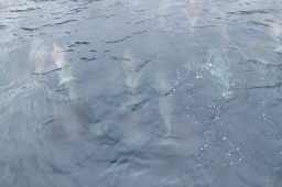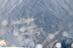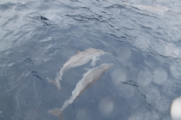 | これで日差しがあって、偏光フィルターなんてあった日にはもう、 ばっちり見えちゃうんですけどね。 雨が降っているので、レンズの前には水滴が付きまくりです。 でも、それ以上にイルカがいまくりです。 |