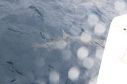 | 船の側面です。 船が走るときにできる波の下を楽しそうに泳ぎます。 |