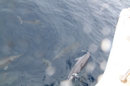 | 船の真下でイルカが見れるって、見たことない人はどう思うんでしょうか? 普通は水族館でしか見れないですからねぇ… |