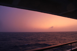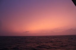 | 夕焼けです。 父島から、ずっと雲が厚く夕日は拝めずじまい。 と思いきや、実は雲が厚くはなかったらしく、空が絶妙に焼けていました。 最初の数枚は、ちょっと暗すぎです。本当はもっと明るいのですが。 |