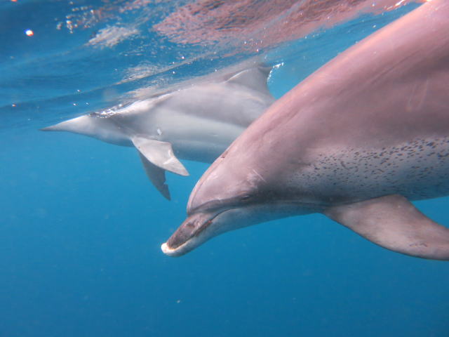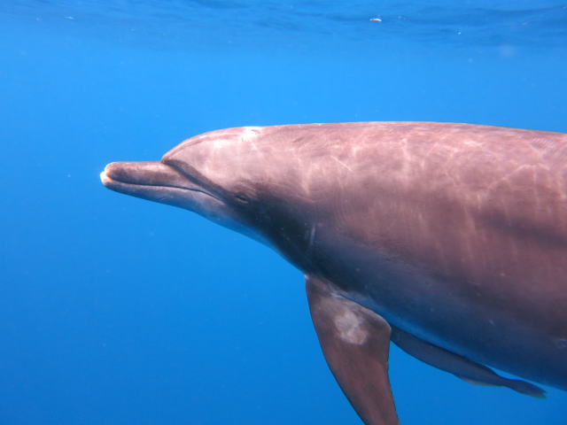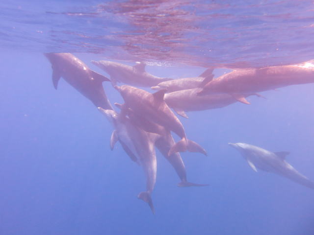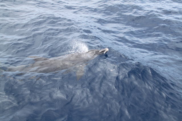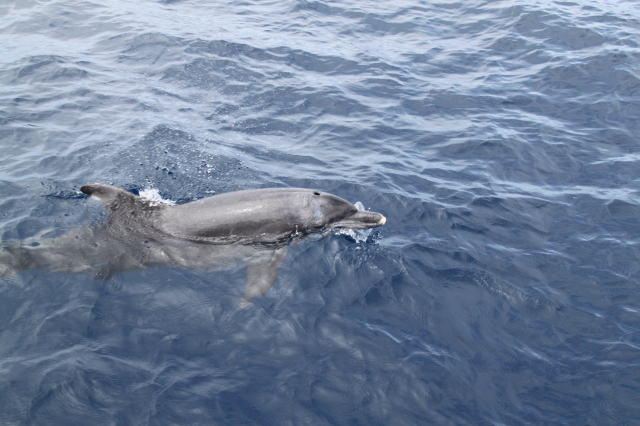 2日目の5月16日、父島周辺の一日ツアー時に遊んでくれたミナミハンドウイルカです。 |