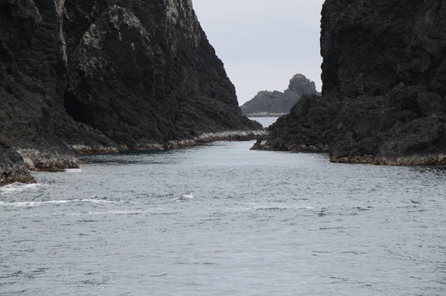 北之島の隣、中之島の岩場の間にある裂け目。 |