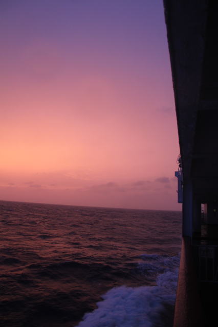 行きのおがさわら丸から見た夕日です。 |
