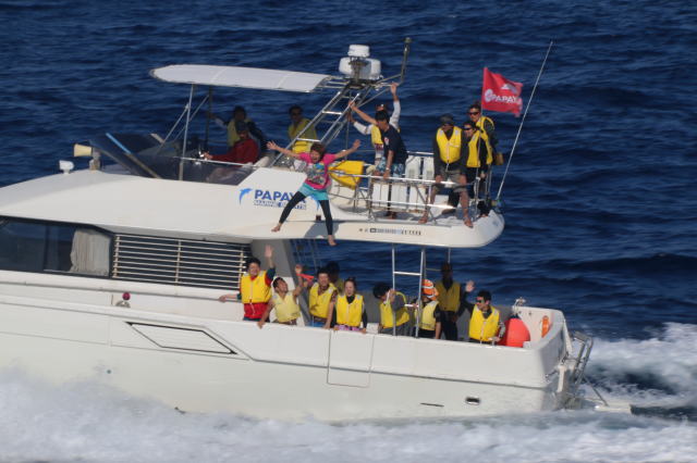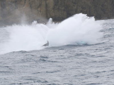 初日の午後半日ツアーでは、波が高くてイルカは見つけられずじまい。 |