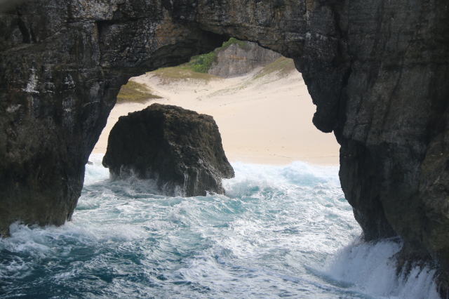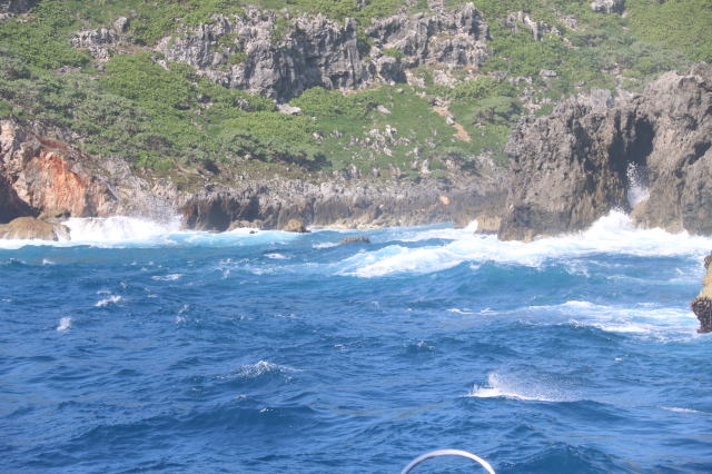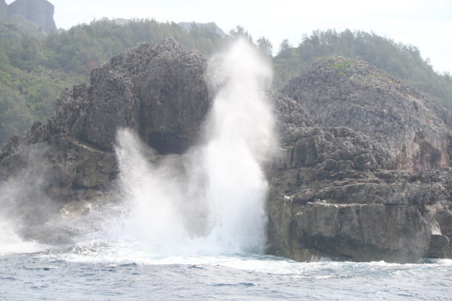 島での3日目。波が高くケータに行けずに父島周辺ツアーに変更になった際の写真です。 |