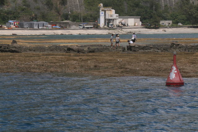 が、この日は大潮に近いのか潮が引きすぎていて枝サンゴが水面に出まくってる!