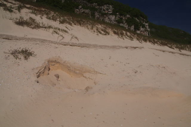 ちょっと面白いのは、カタマイマイの半化石が露出している箇所のど真ん中に、ウミガメちゃんが産卵・・・