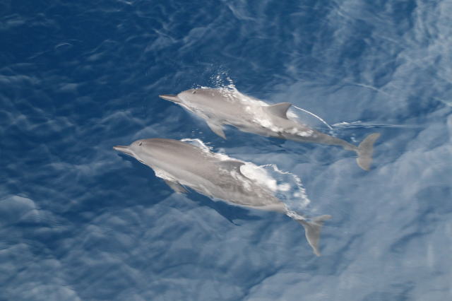 2回目に出たハシナガとミナミハンドウの混合群れ。