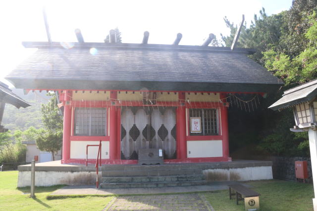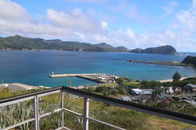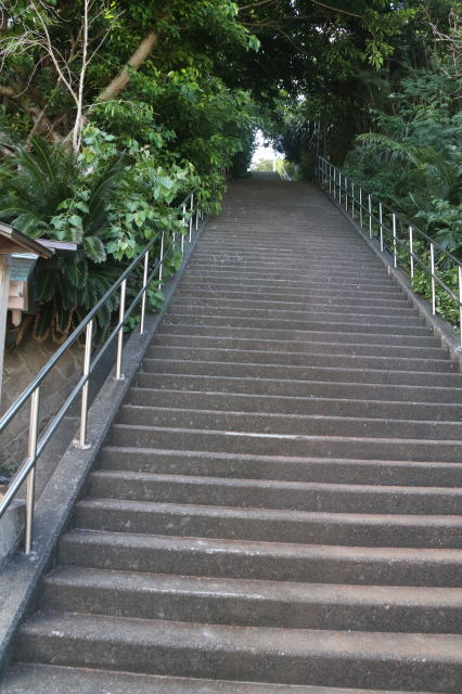 | 小笠原の神社で最も有名なのは、二見港のすぐ横の高台にある大神山神社です。 神社の先には展望台があり、山全体が大神山公園になっています。 そういえば、今まで一度も参拝したことがなかったので、お参りしてきました。 神社まではかなりの急階段になっています。 展望台からの眺めは素晴らしく、港周辺の街並みから、二見湾まで一望できます。 |
