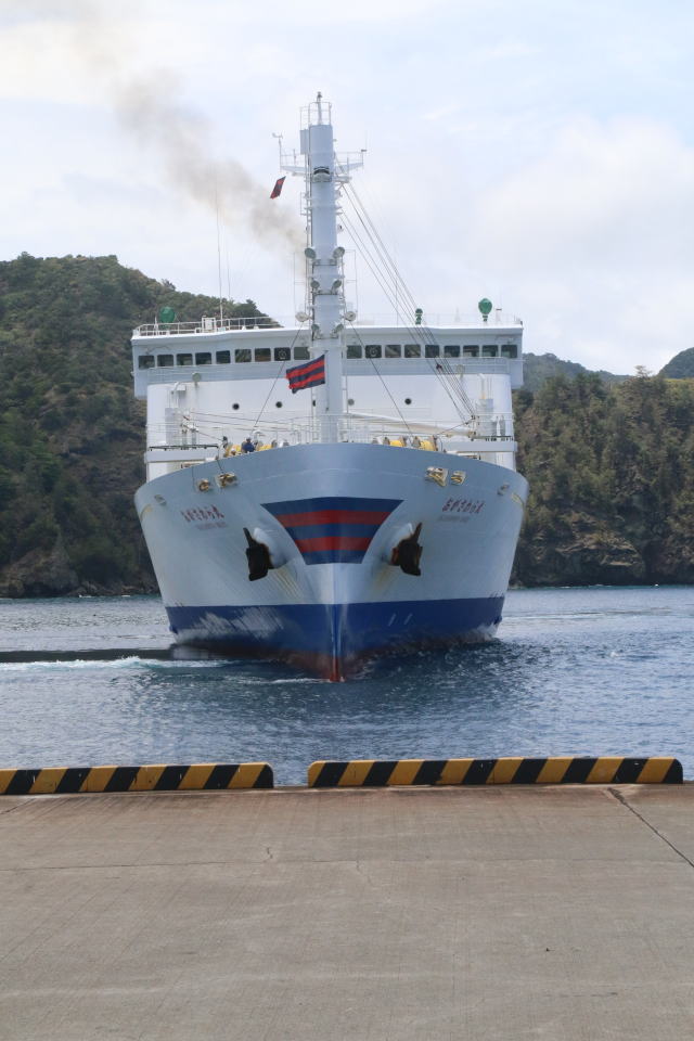| 母島でもやりましたが、以前誰かのインスタで見たもののパクリです。 ははじま丸に続いて、折角なのでおがさわら丸でも撮りました。 おがさわら丸はとても大きいので、港から撮るときには縦にしないと画角に船が入りません。 |