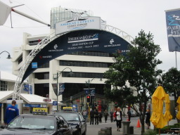| 各国のヨットが停泊するドックがある、アメリカズカップビレッジの入り口です。 といっても、まだ予選のルイビトンカップですが… |