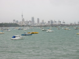| 遠くにかすんで見えるのはダウンタウンです。Sky Tower 等が見えます。 水族館のあたりから撮りましたが、天気が悪くあまりはっきり撮れませんでした。(30分おきに雨と晴れが変わるめちゃくちゃな天気でした) そこら中にボートが泊めてありました。 |