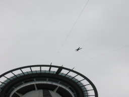 | 左にあるのは Sky Tower です。 人が飛び降りています。 非常に危険…ではありません。 2本のロープにつながれていて、更に命綱が付いています。 写真は下側の展望台から撮ったもので、上下の展望台の間から飛び降ります。 飛び出した後、一旦空中で止まり写真を撮ってくれます。その後、一気に落ちてゆきます。 |