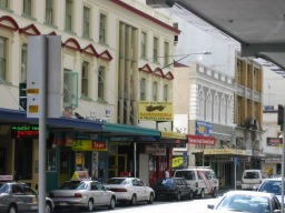 | Queen Street です。早朝に撮った写真なのでほとんど人が居ませんが、昼から夜中にかけては道いっぱいに人がいます。韓国人が多いようです。 | |