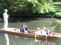 | 「パディング」と呼ばれる、船頭さんが漕ぎながらのんびり進む船です。船頭さんは観光案内もしてくれるそうです。 同じ場所からカヌーを借りることもでき、私は一人乗りのカヌーに乗ってみました。 |