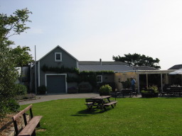 | すぐ上の写真の右側あたりです。天気が良いので、屋外のテーブルで飲みました。 |