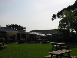 | 最初に訪れたワイナリーです。 YHAを昼に出るため、ここでランチとなります。出された料理はワイナリーツアーにふさわしく、チーズ料理色々でした。 裏にきれいな庭があり、そこに出してあるテーブルでランチを食べました。 |