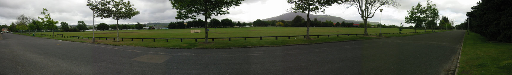 ロトルアで泊まった、Kiwi-Paka YHA の裏にある巨大なクイラウパーク(Kuirau Park)の巨大グラウンドです。
