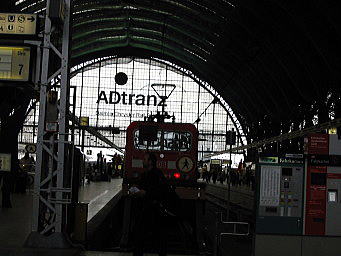 フランクフルト中央駅の長距離列車用地上ホームです(実際はこんなに暗くはないです)。この写真では狭く見えますが、実際には奥の金網まではかなりの距離があります。大きな駅です。 |