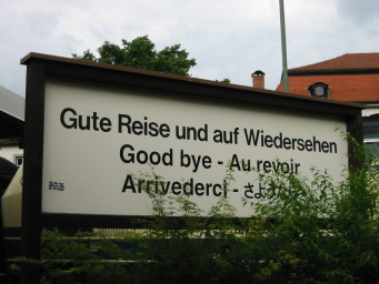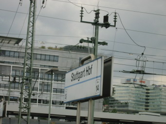 駅の看板です。普通の駅は、Bahnhof(駅)を略して "bf"が最後につくことが多いのですが、大きい駅はHauptbahnhof(中央駅)を略して"hbf"が付くようです。ただし、超巨大駅は別なようですが… |