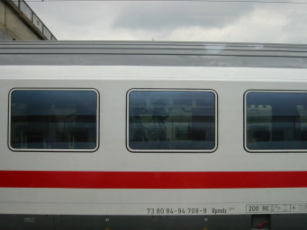 列車の車両です。 見れば分かるって? でも窓の中に見えるのは自転車です。ドイツの車両は自転車が持ち込めるようになっていました。 |