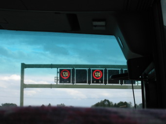ミュンヘンを出発するとすぐに高速道路を走ります。 120[km]!?の速度制限のようです。 |