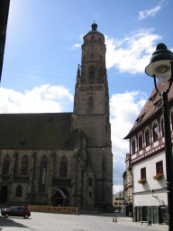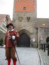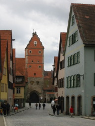 こちらは昼食のための休憩に立ち寄った街ディンケルスビュール(Dinkelsbuhl)です。正面に街の入り口があります。 |