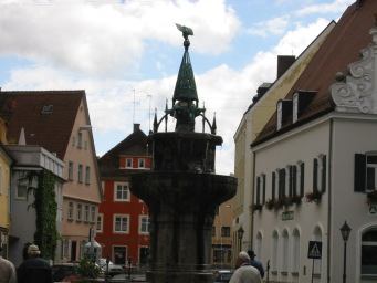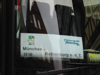 これも上と同じ街です。2台止まっていますが、私が乗っていたのは前の車(ミュンヘン発)です。後ろのバスはフュッセン発で、ローデンブルグまでいっしょに走った後で一台にまとめられてしまいました。 |