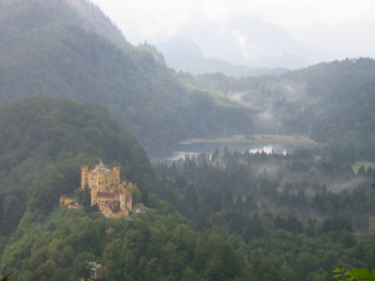 こちらが、有名なノイシュヴァンシュタイン城です。 ホーエンシュヴァンガウ城からの眺めですが、ルードリッヒU世もこうやってこの城から完成を待ちわびたそうです。 |