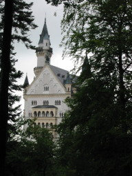 同じく山道の途中で見えたノイシュヴァンシュタイン城です。 まさに”白亜の城”の風格があります。 |