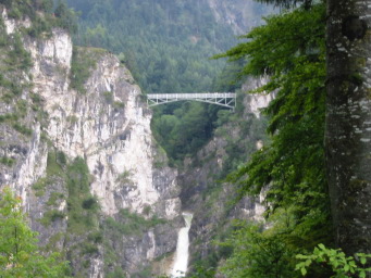 こちらはノイシュヴァンシュタイン城からみたマリエン橋です。橋が小さいのではなく、かなり離れています。 (上の写真はここから撮ったものです) |