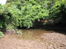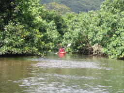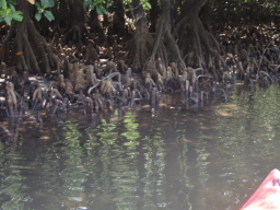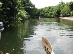 | 支流の川岸です。 支流のほうが木が小さいように感じられました。 支流には主にオヒルギとメヒルギ、 ヒナイ川にはヤエヤマヒルギが多く見られました。 |