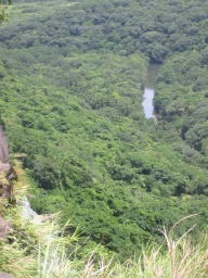 | 滝の上から見たヒナイ川です。 滝の側から見ると、途中で左に折れ曲がっています。 |