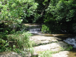 | 滝上の川の様子です。 私が行った時にはあまり激しい流れではなかったのですが、 苔で非常に滑りやすいため、滑って流されたら助かりません。 |