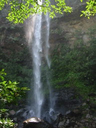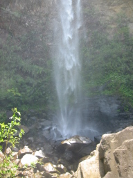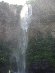 | 山を降りて滝の下からの滝の様子です。 この滝は滝つぼに落ちているわけではなく、脇の岩の上に 流れ落ちています。 |
