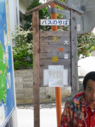 | 西表島を周回するバスは、島の東南にある大原から 島の西部にある白浜までの間を一日3往復しています。 写真は起点となる大原のバス乗り場です。 |