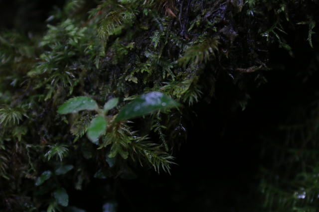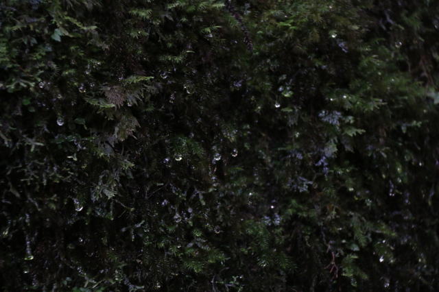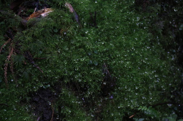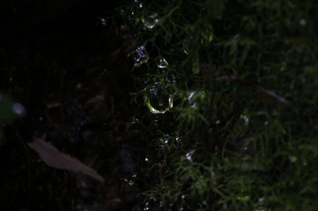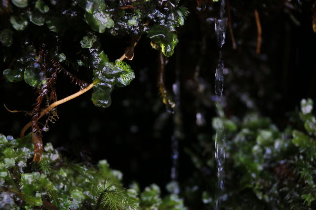 場所によっては苔の隙間から水がしたたり落ちていて、水源を形成したりしています。